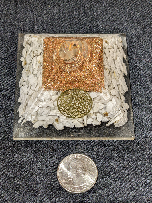 Orgonite Pyramid with Howlite and Flower of life symbol