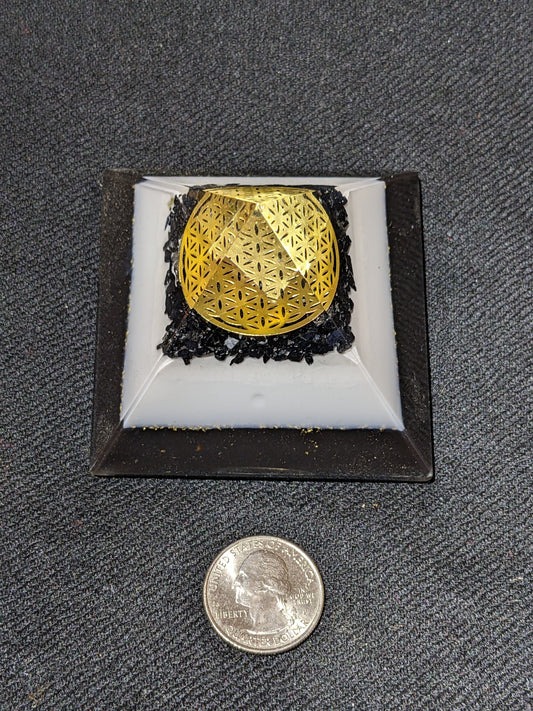 Orgonite pyramid with shungite, tourmaline and flower of life symbol