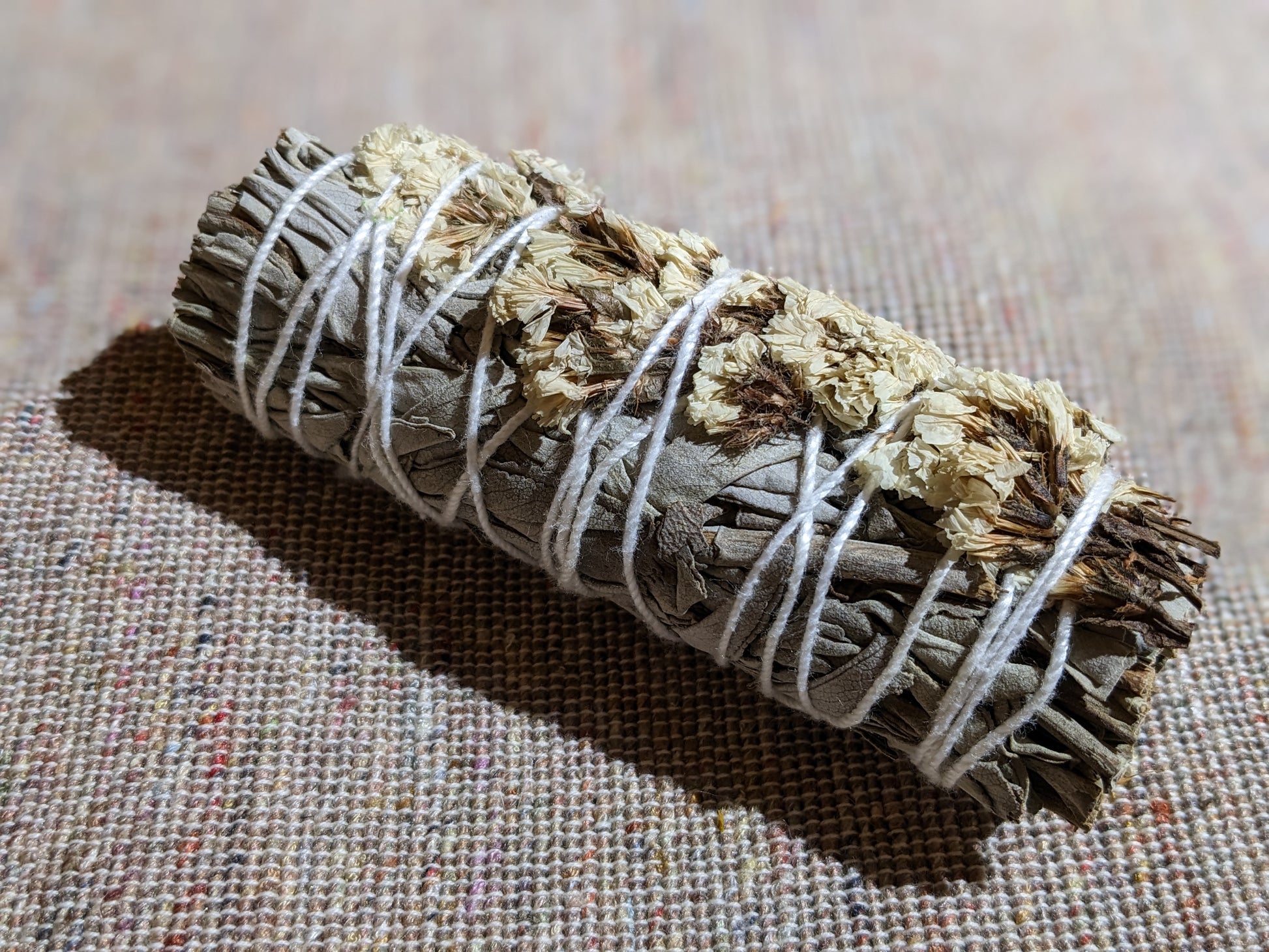 The sinuata flowers add a delightful touch of color and enhance the already delightful fragrance of the white sage. This combination is perfect for cleansing and purifying the air in your home or office. It also makes a great gift for any friend or loved one who is interested in spiritual practices and natural remedies.
